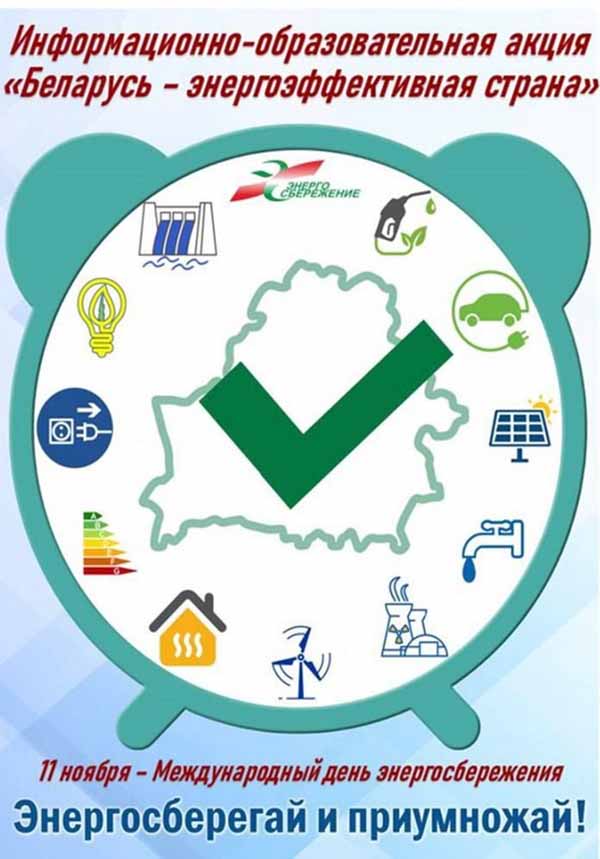 С 10 по 20 ноября 2025 года Департамент по энергоэффективности проводит республиканскую информационно-образовательную акцию «Беларусь – энергоэффективная страна», приуроченную к Международному дню энергосбережения, который ежегодно отмечается 11 ноября.