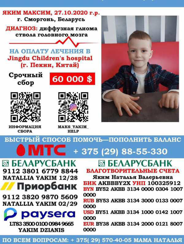Как рассказала мама Максима Наталья Валерьевна, первые тревожные симптомы болезни проявились в декабре прошлого года. У мальчика появилось косоглазие, а вскоре — шаткая походка. Родители обратились за помощью в Сморгонскую ЦРБ, где Максиму провели компьютерную томографию головного мозга. Врачи заподозрили глиому и направили ребёнка в РНПЦ нейрохирургии. После проведённого МРТ диагноз подтвердился — диффузная глиома ствола головного мозга.